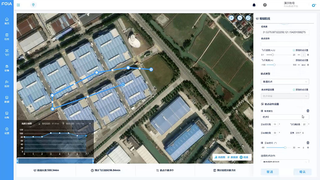 通過任務的確立,一鍵自動規劃最佳航線,減少飛行路線上的不確定性,提前規避已知故障,增加飛行效率